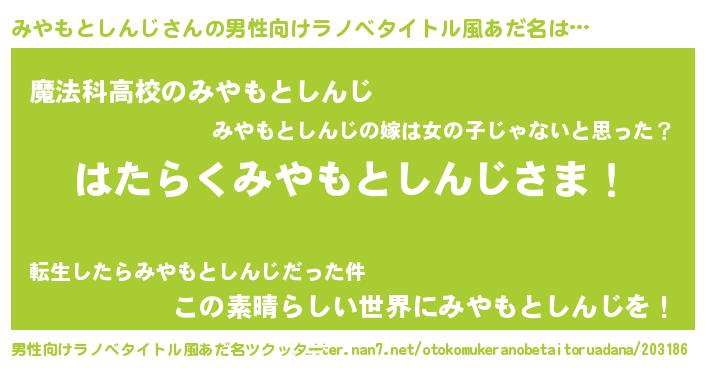 | 欧米人風あだ名 | 『アンジェラ・みやもとしんじ』 |