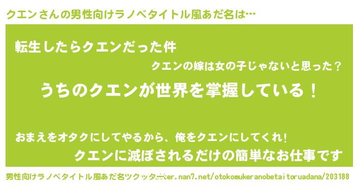 | ヒーロー風カッコイイあだ名 | 『天弓騎士クエ』『慈愛の使者クエン』 |