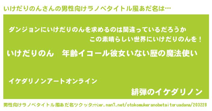 | 女子向けラノベタイトル風あだ名 | 『いけだりのんの玉の輿計画!』 |