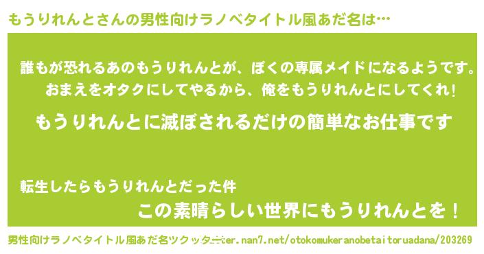 | 意味不明あだ名 | 『永久保存もうりれんと』 |