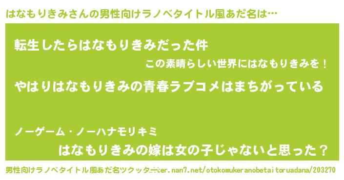 | 女子向けラノベタイトル風あだ名 | 『はなもりきみの雑貨屋さん』 |
