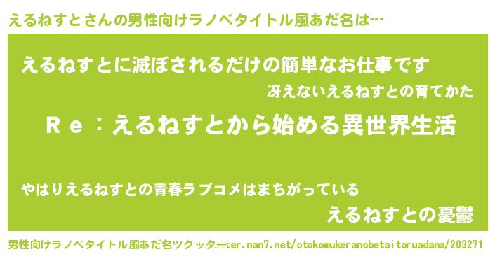 | 肩書あだ名 | 『えるねすと総統』『えるねすと社長』 |