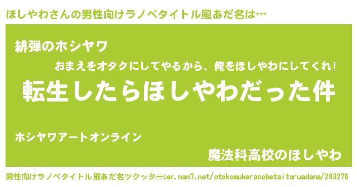 | ヒーロー風カッコイイあだ名 | 『サイバー戦士ホシヤワ』『仮面ホシダー』 |