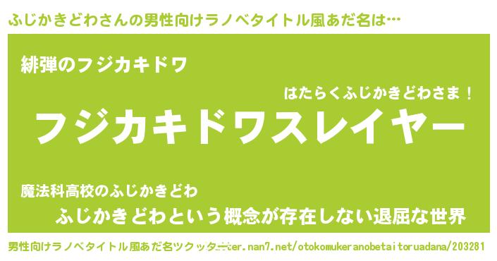 | 胡散臭い通販商品みたいなあだ名 | 『絶対に幸福をもたらす水素水…その名も「ふじかきどわ」』 |