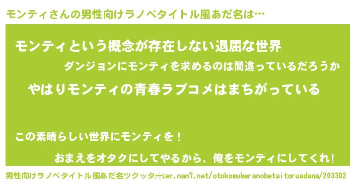 | 女子向けラノベタイトル風あだ名 | 『モンティの雑貨屋さん』 |