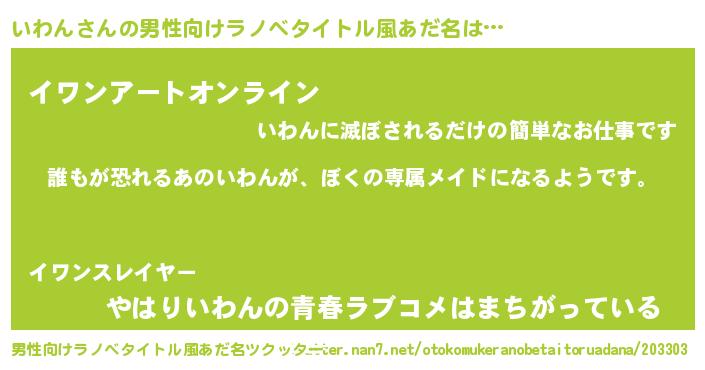 | ファンタジー風あだ名 | 『イワディッシュ』『イワフェル』 |