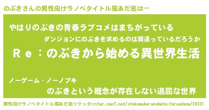 | 意味不明あだ名 | 『自称のぶき』『のぶきフォーエバー』 |
