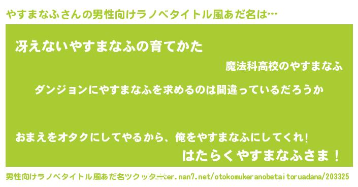 | 女子向けラノベタイトル風あだ名 | 『やすまなふは平凡を望む』 |