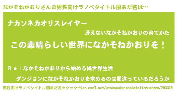 | 意味不明あだ名 | 『住所不定無職なかそねかおり(10歳)』 |