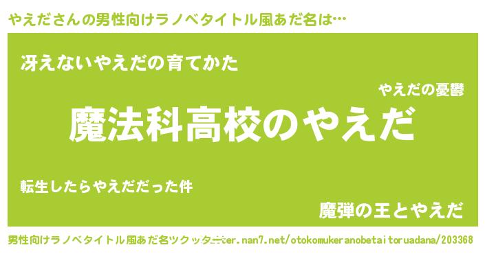 | 女子向けラノベタイトル風あだ名 | 『やえだアンティーク』 |