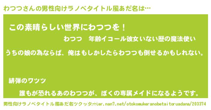 | 胡散臭い通販商品みたいなあだ名 | 『世界が平和になる高級そうな壺…その名も「わつつ」』 |