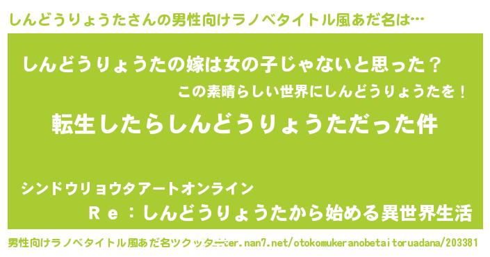 | 胡散臭い通販商品みたいなあだ名 | 『伝統あるペンダント…その名も「しんどうりょうた」』 |