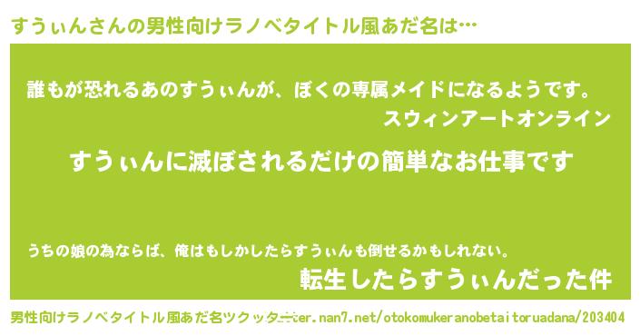 | ヘコむあだ名 | 『すうぃん(笑)』『すうもー』 |
