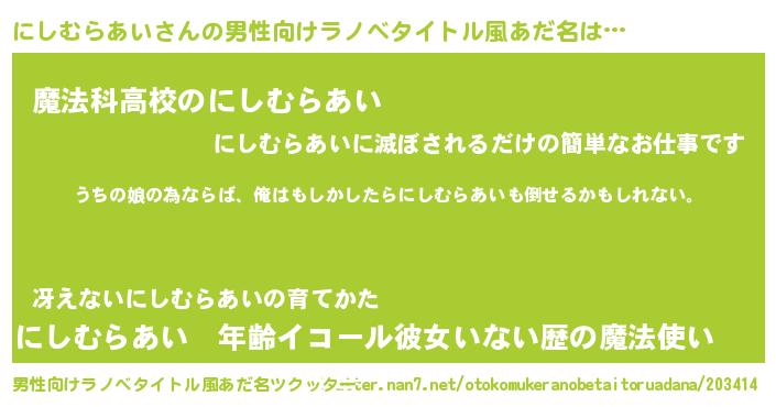 | 女子向けラノベタイトル風あだ名 | 『にしむらあいの婚約者』 |
