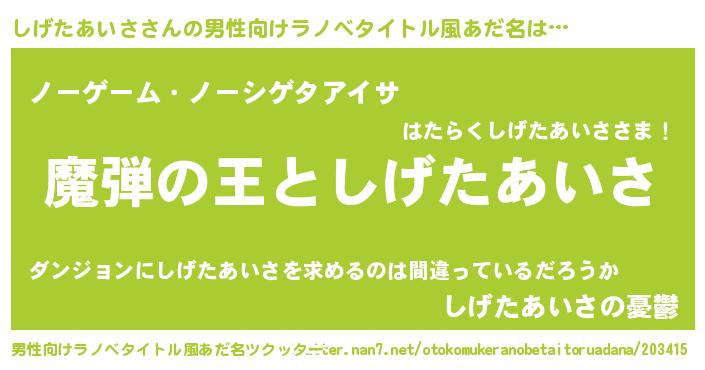 | 意味不明あだ名 | 『住所不定無職しげたあいさ(11歳)』 |
