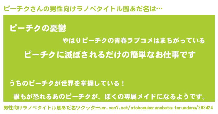 | ヘコむあだ名 | 『ピーにゅー』『ピーチク(爆)』 |