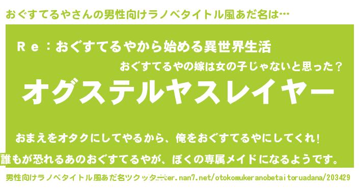 | 女子向けラノベタイトル風あだ名 | 『婚約破棄系悪役おぐすてるやに転生したので、保身に走りました。』 |