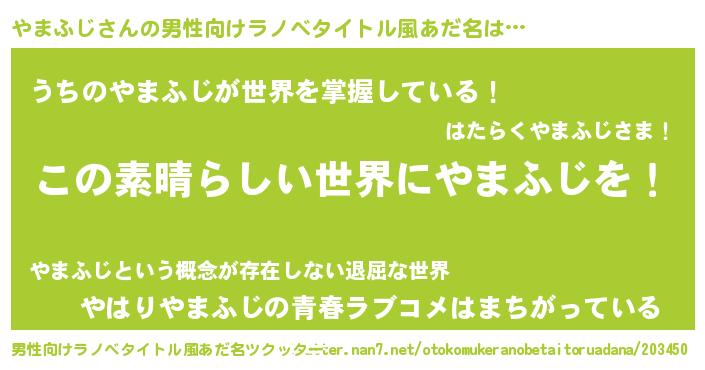 | 意味不明あだ名 | 『住所不定無職やまふじ(77歳)』 |