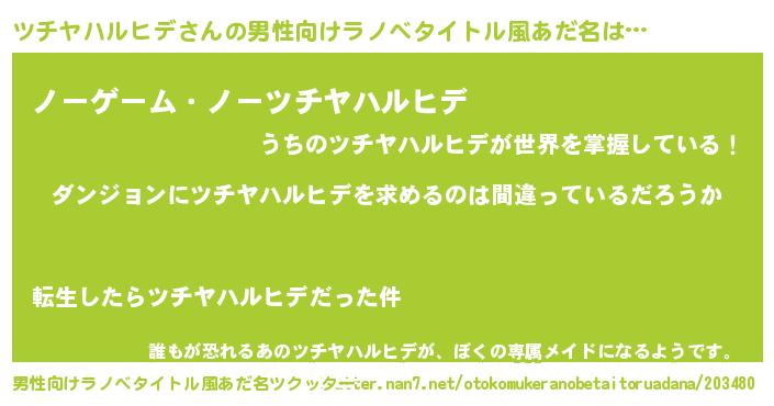 | 胡散臭い通販商品みたいなあだ名 | 『信頼と実績のサプリメント…その名も「ツチヤハルヒデ」』 |