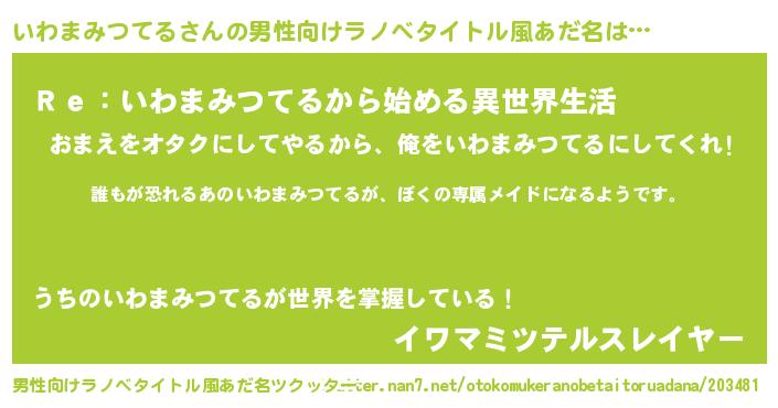 | 胡散臭い通販商品みたいなあだ名 | 『前代未聞の健康食品…その名も「いわまみつてる」』 |