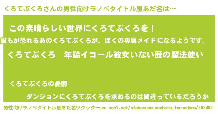 | 女子向けラノベタイトル風あだ名 | 『くろてぶくろの玉の輿計画!』 |