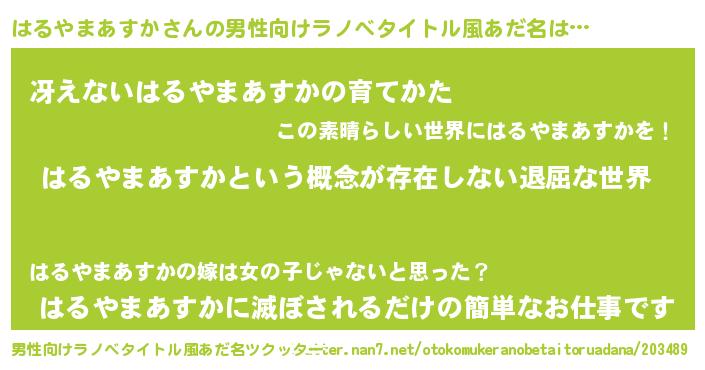 | 意味不明あだ名 | 『永久保存はるやまあすか』 |
