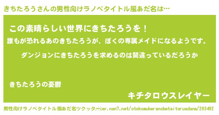 | 女子向けラノベタイトル風あだ名 | 『きちたろうの卵を拾いまして』 |