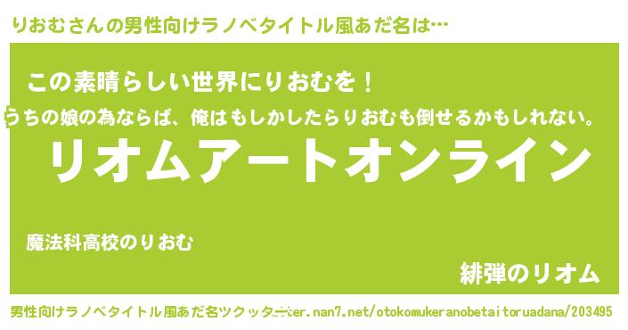 | 胡散臭い通販商品みたいなあだ名 | 『億万長者になれるブレスレット…その名も「りおむ」』 |