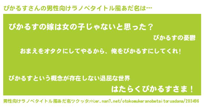 | 女子向けラノベタイトル風あだ名 | 『ぴかるす夫妻のなれそめ』 |