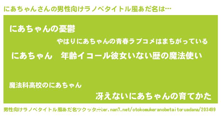 | 胡散臭い通販商品みたいなあだ名 | 『億万長者になれる水晶球…その名も「にあちゃん」』 |