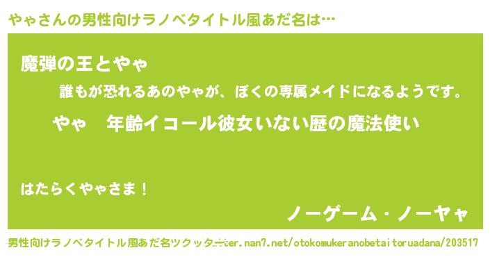 | ヒーロー風カッコイイあだ名 | 『仮面ヤャダー』『友情の使者やゃ』 |
