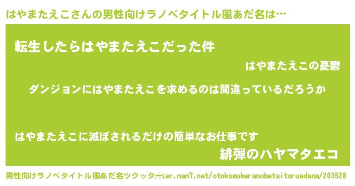 | ヒーロー風カッコイイあだ名 | 『暗黒騎士ハヤ』『スーパーハヤマタエコ』 |