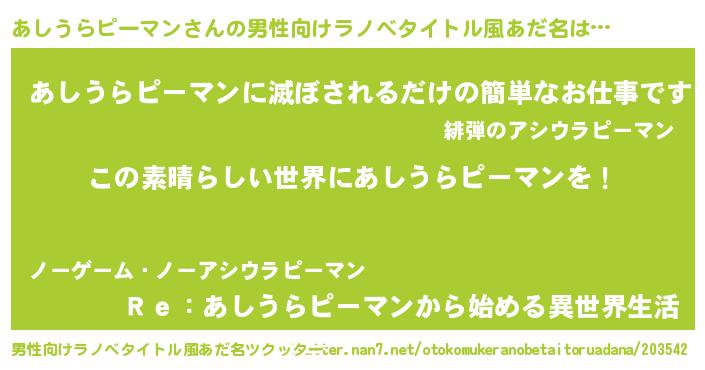 | 意味不明あだ名 | 『住所不定無職あしうらピーマン(10歳)』 |