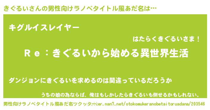 | ヘコむあだ名 | 『酢こんぶ』『きぐお』『きぐにゅー』 |