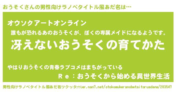 | ヘコむあだ名 | 『おうもー』『おうそく(笑)』 |