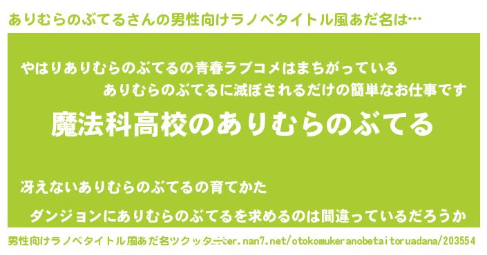 | 女子向けラノベタイトル風あだ名 | 『ありむらのぶてるなんてお断りですっ。』 |