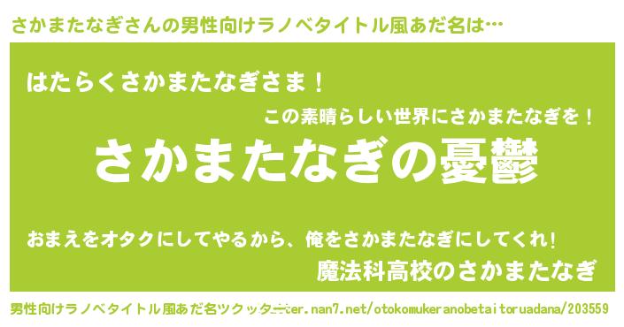 | 女子向けラノベタイトル風あだ名 | 『さかまたなぎ姫と円卓の騎士』 |