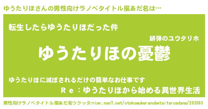 | 女子向けラノベタイトル風あだ名 | 『(仮)ゆうたりほのやんごとなき事情』 |