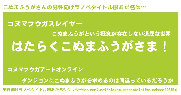こぬまふうがさんの男性向けラノベタイトル風あだ名をツクッター!