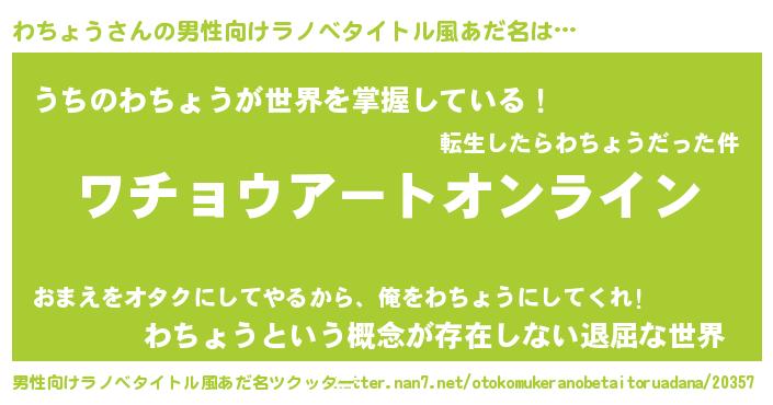 | 胡散臭い通販商品みたいなあだ名 | 『モテモテ間違いなし水晶球…その名も「わちょう」』 |