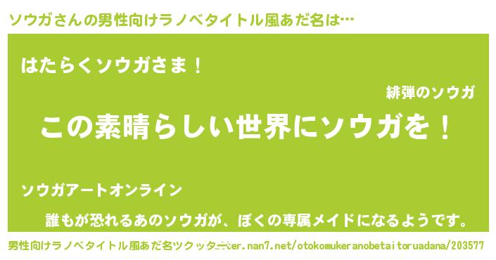 | 意味不明あだ名 | 『住所不定無職ソウガ(74歳)』『自称ソウガ』 |