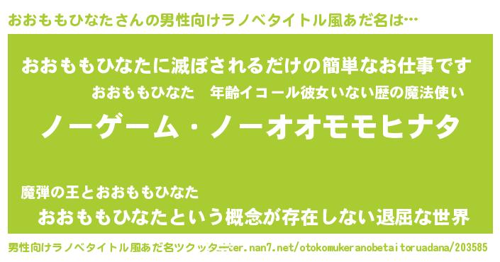 | 女子向けラノベタイトル風あだ名 | 『死神おおももひなたの再婚』 |
