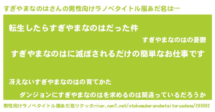 | 肩書あだ名 | 『すぎやまなのはプロデューサー』 |