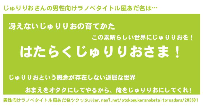 | 欧米人風あだ名 | 『アンジェラ・じゅりりお』 |