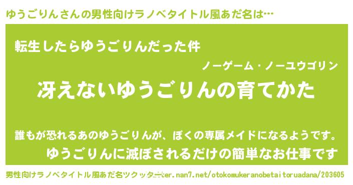 | ヘコむあだ名 | 『ゆうごりん(笑)』『ゆうっふぃ~』 |