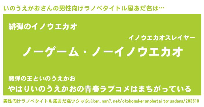 | 女子向けラノベタイトル風あだ名 | 『死神いのうえかおの再婚』 |