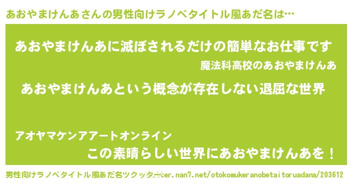 | ヘコむあだ名 | 『あおやまけんあ(笑)』『あおにゅー』 |