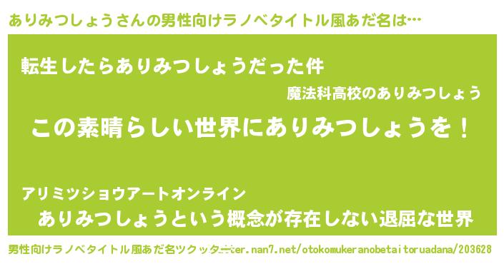 | 意味不明あだ名 | 『住所不定無職ありみつしょう(11歳)』 |