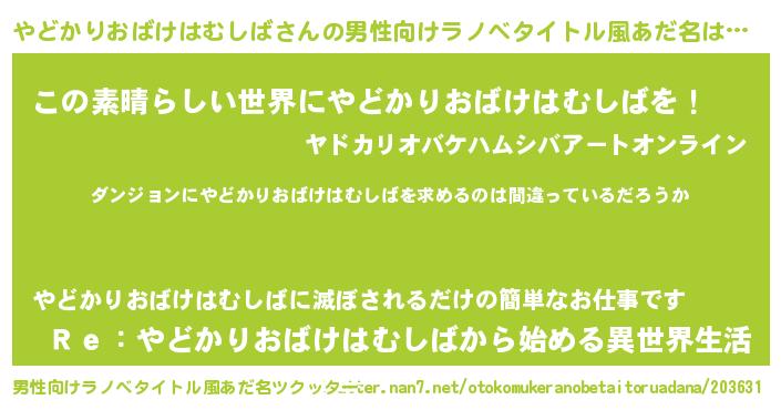 やどかりおばけはむしばさんの男性向けラノベタイトル風あだ名をツクッター!