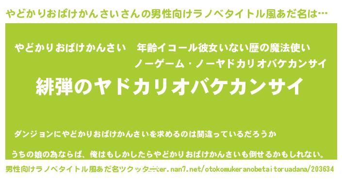 | 女子向けラノベタイトル風あだ名 | 『シンデレラやどかりおばけかんさい家の靴箱館』 |